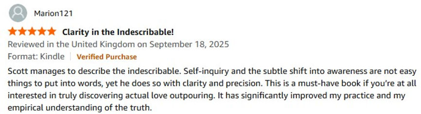 The tone, where so many books on nonduality are phrased in difficult to grasp analogies, is straightforward and clear and the 'voice' is reader friendly and accessible. A really useful book for anyone looking to understand nonduality."
